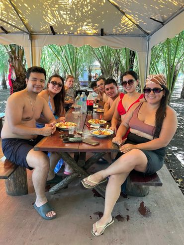 Facilidades incluyen acceso directo al río, parqueo amplio, duchas, baños, vestuarios, muelles de acceso al río, mesas, bancos y kiosco a orillas del río.